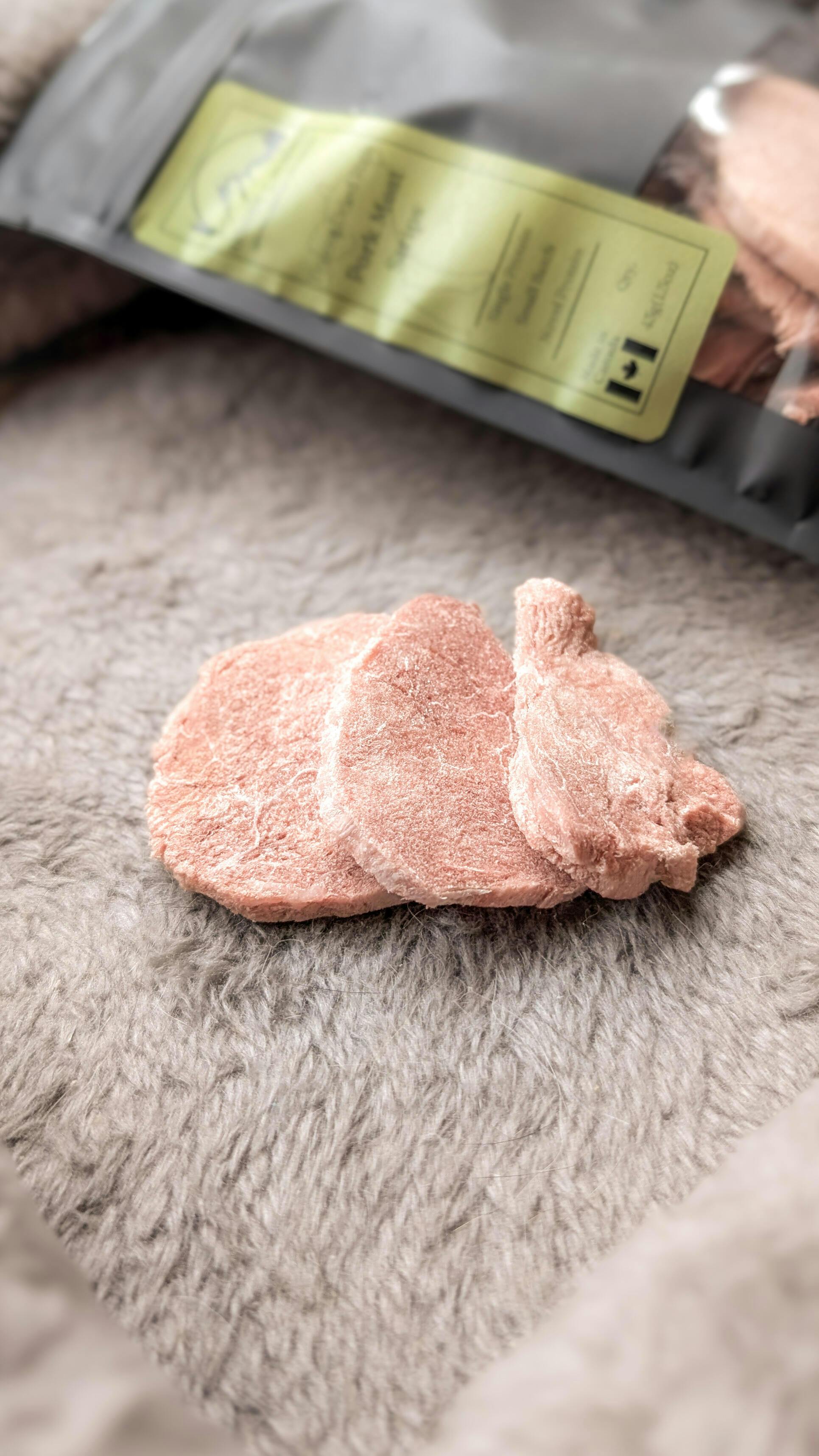 Tranches crues lyophilisées de viande de porc maigre pour vos animaux de compagnie !