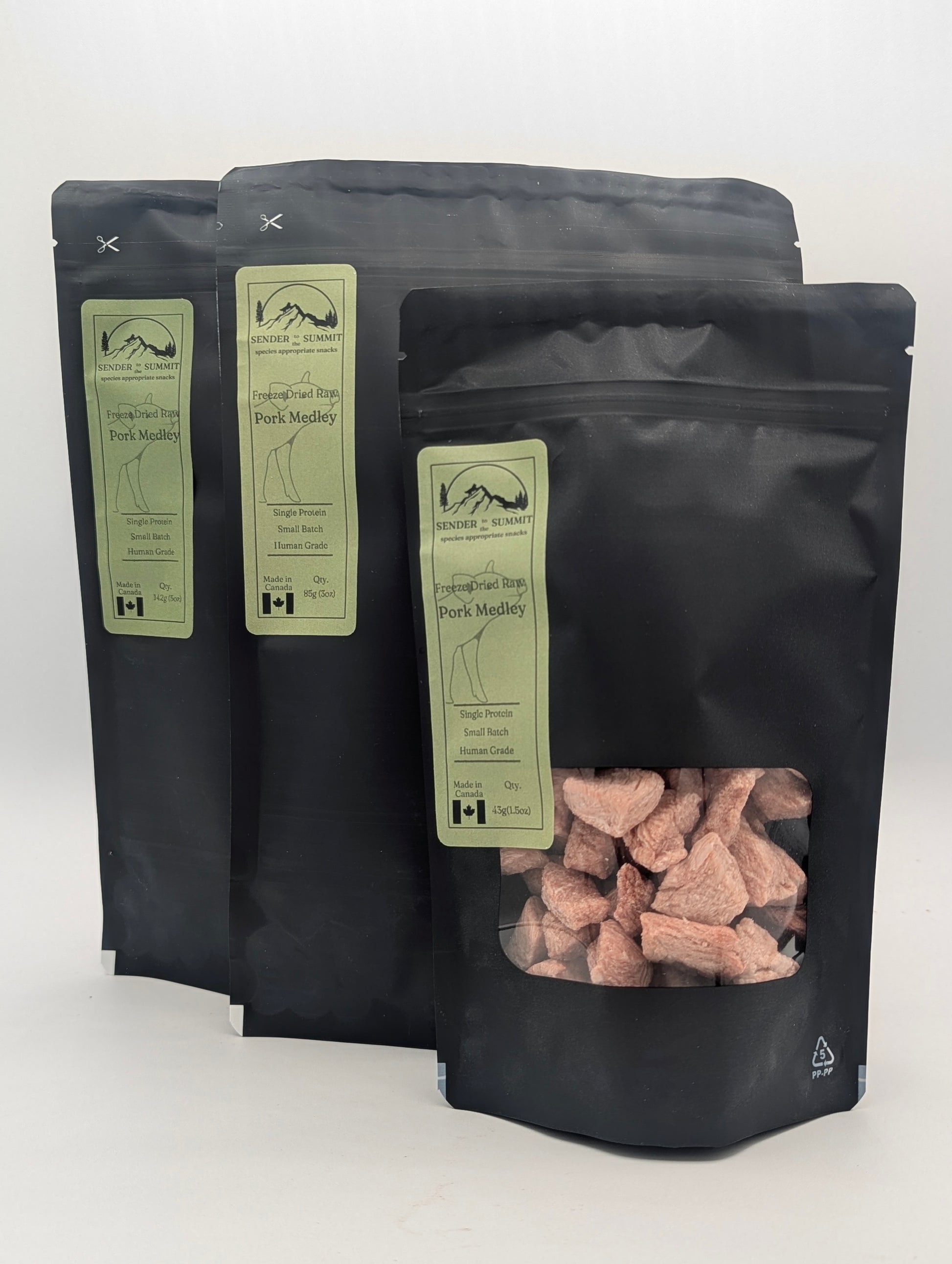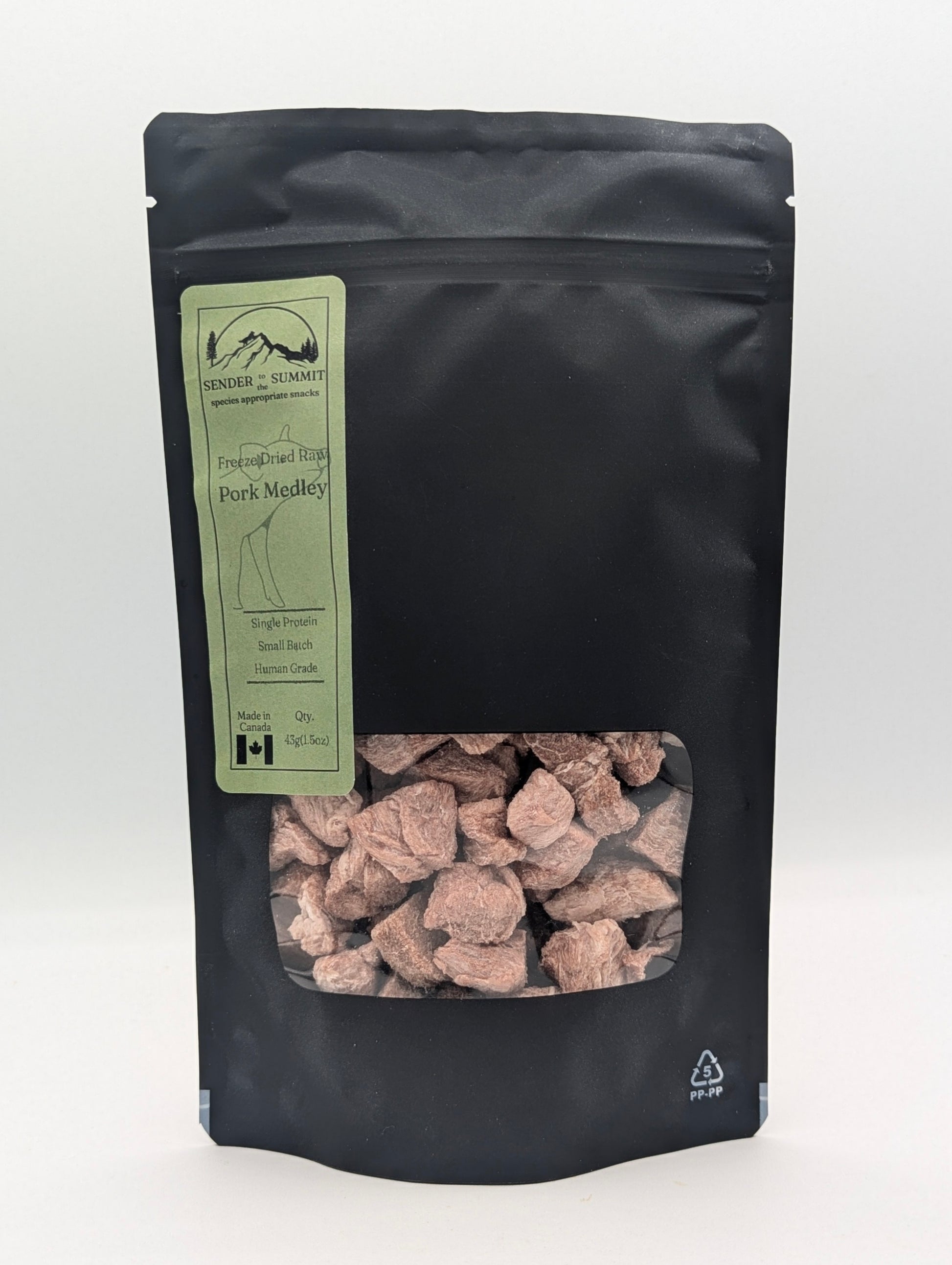 Tranches crues lyophilisées de viande de porc maigre pour vos animaux de compagnie !