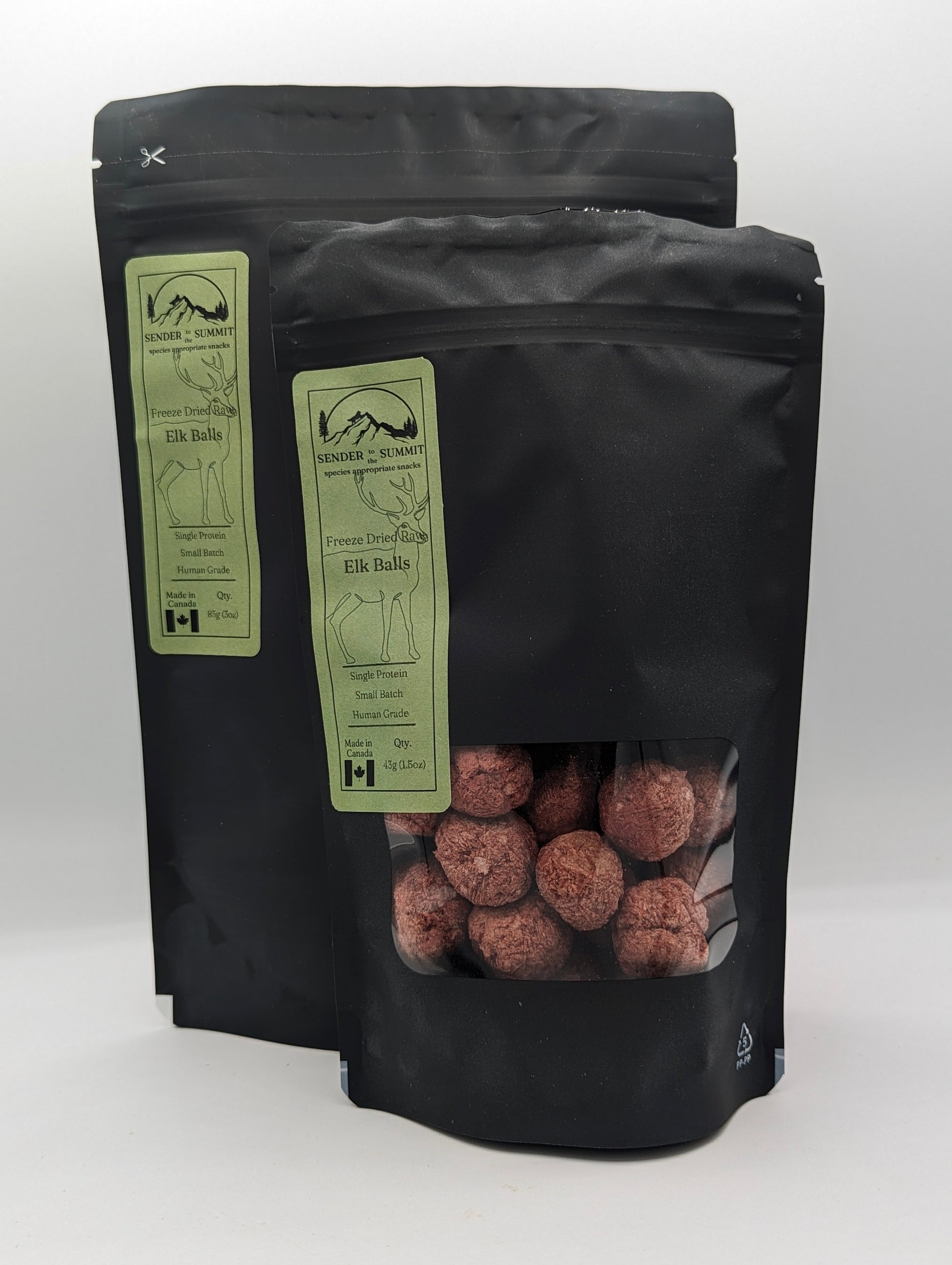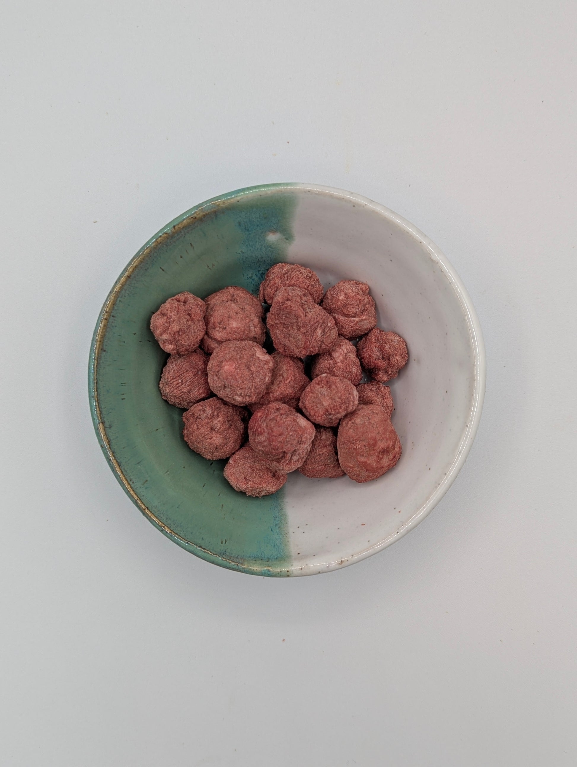 Fun freeze dried raw bite size meatballs of elk for your pets!