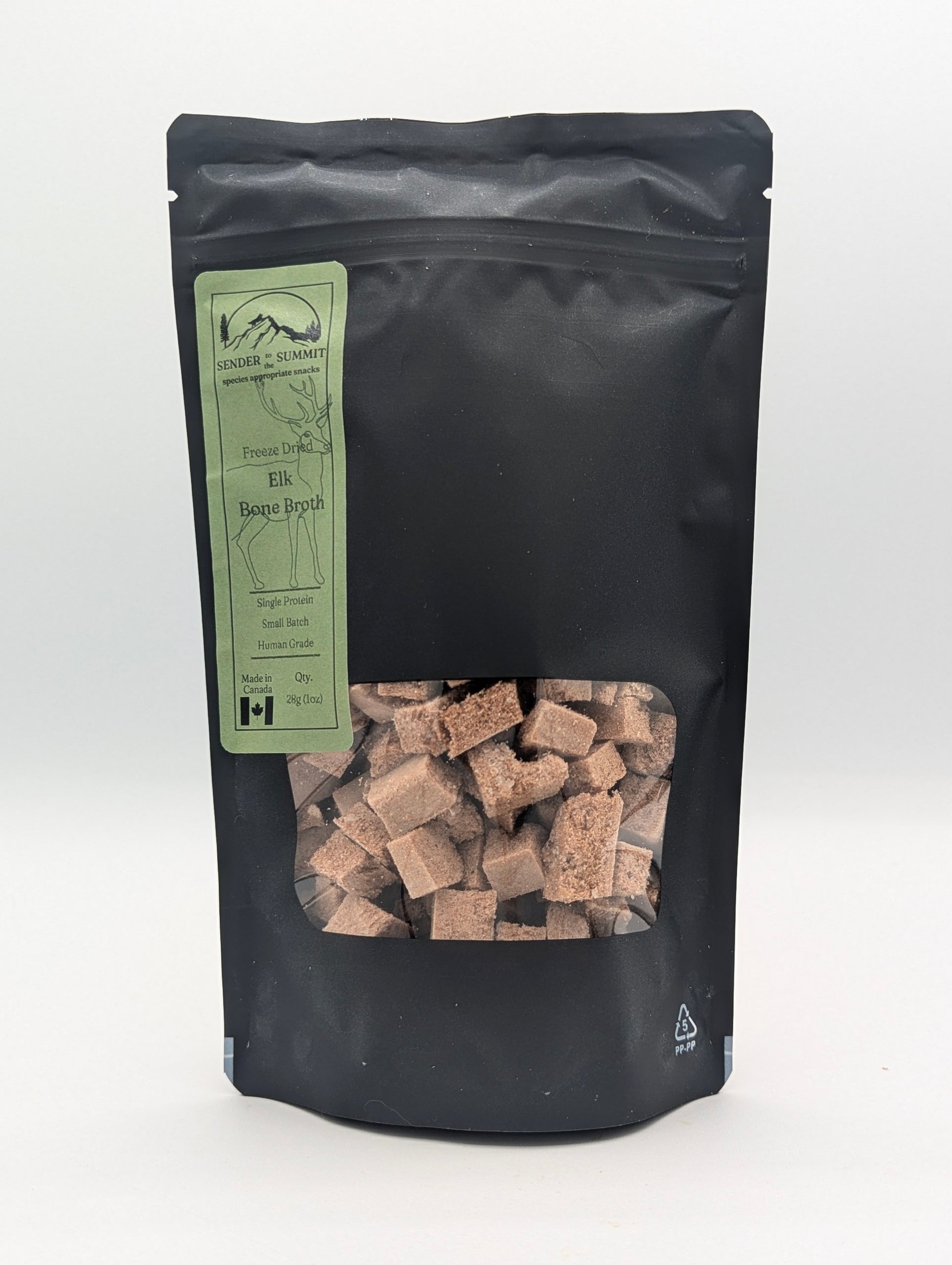 Ingredients: Elk bone broth, elk meat, apple cider vinegar, rosemary