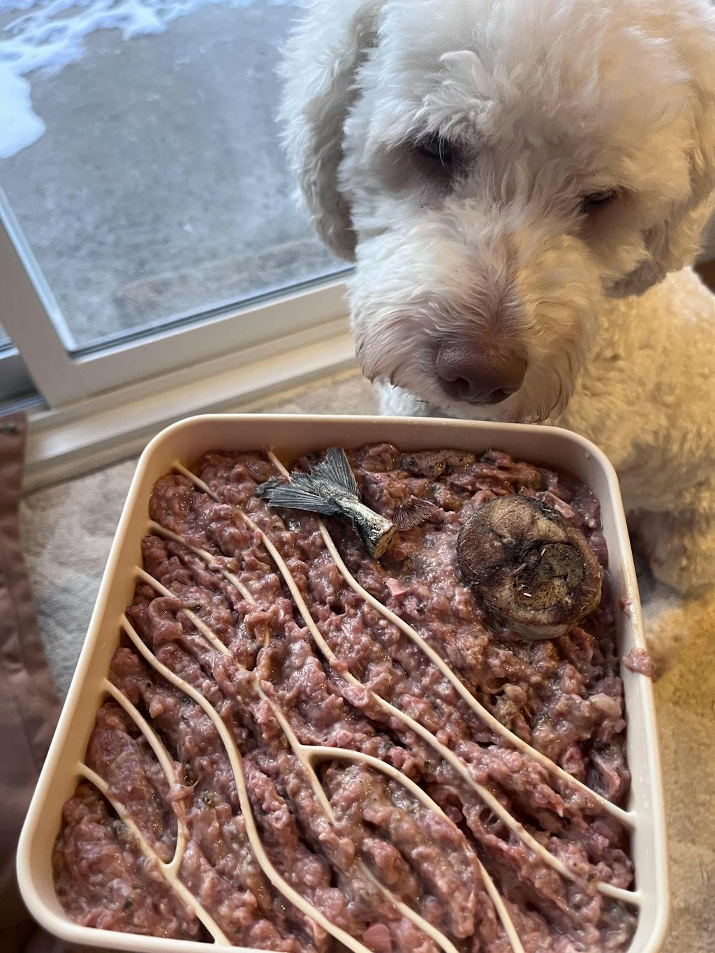Wild caught Atlantic mackerel is an ideal fish to feed due to its small size and shorter life span (low biomagnification of toxins). It is always good to introduce new foods slowly to prevent digestive upset! (Mackerel has less of a fishy smell than sardines or herring)